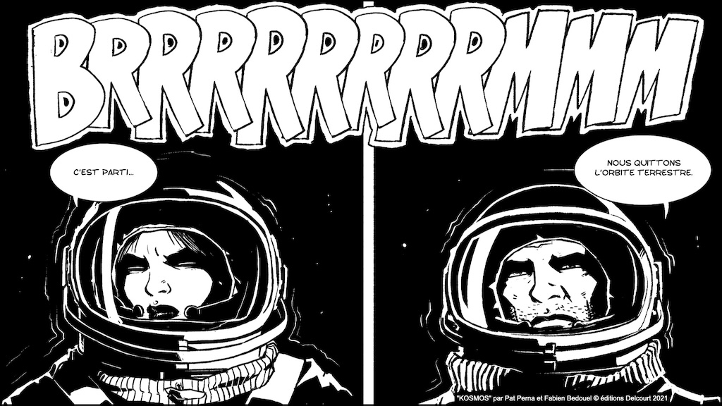 Le générique pour découvrir cette magnifique BD ("Kosmos" aux éditions Delcourt 2021)